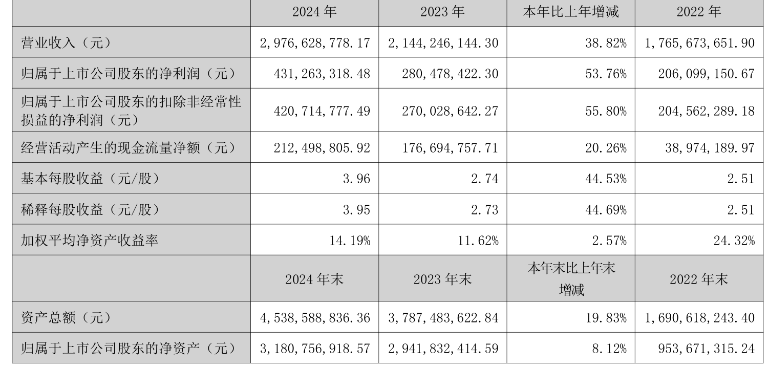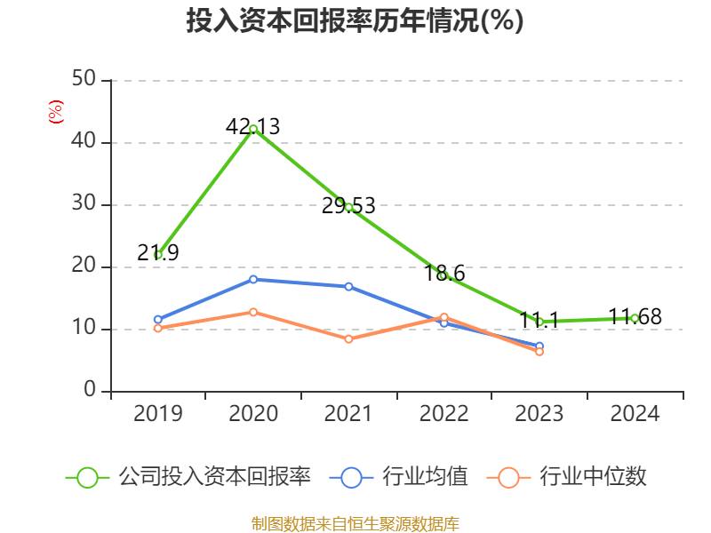 数据显示,2024年公司加权平均净资产收益率为14.19%,较上年同期上升2.57个百分点。公司2024年投入资本回报率为11.68%,较上年同期上升0.58个百分点。