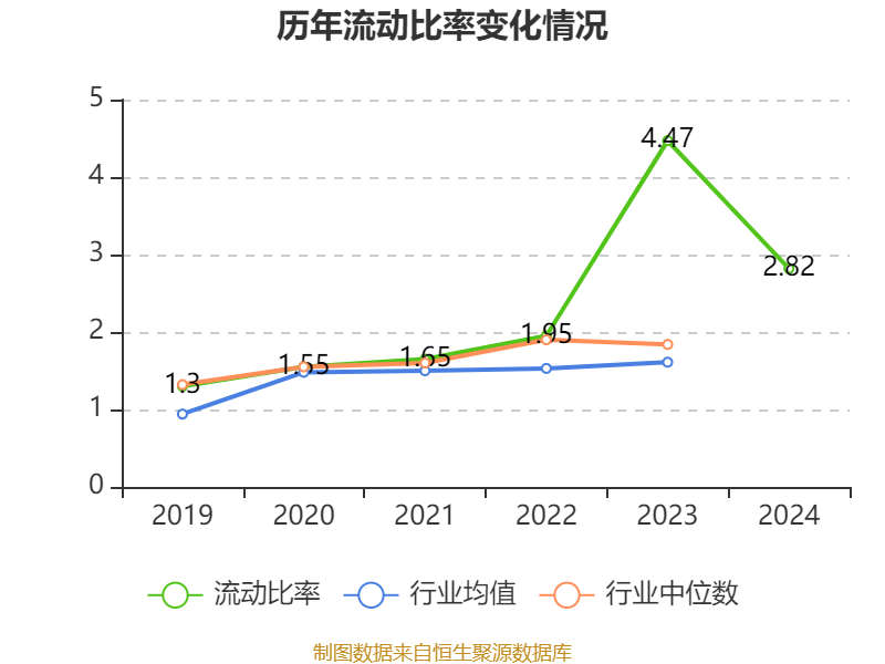 2024年,公司流动比率为2.82,速动比率为1.86。